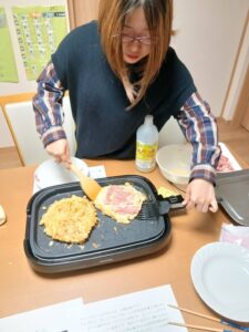 グループホームでクッキングを行い、今回はみんなで話し合って決めた「お好み焼き」を作りました。 調理を通して技術の習得を目指しながら、協力する大切さも学んでいます。 写真は、お好み焼きをひっくり返す1番の見せ場の瞬間です! […]
